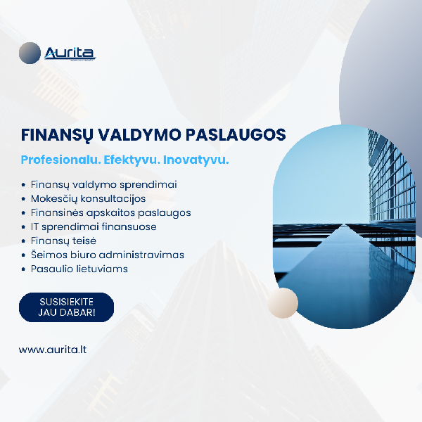 Veiklos aprašymas: UAB Aurita - finansų valdymo paslaugų centras. Dirbame tiek su juridiniais, tiek su fiziniais asmenimis. MŪSŲ PASLAUGOS: Finansų valdymo sprendimai: • Finansų vadovo funkcija • Finansų valdymo sistemos sukūrimas • Finansų valdymo įmonėje monitoringas • Įmonės veiklos finansinis vertinimas • Projektų strateginis ir finansinis vertinimas • Procesų formavimas įmonės vertės didinimui užtikrinti • Įmonės paruošimas kreditavimui • Finansavimo šaltinių paieška • Informacijos ir dokumentų paruošimas kreditavimui • Pajamingumo užtikrinimas prognozavimo būdu • Veiklos prognozavimas • Biudžeto sudarymas ir paruošimas • Biudžeto vykdymo kontrolė • Pajamų ir pelningumo analizė • Pajamų ir sąnaudų kontrolė • Pinigų srauto užtikrinimo analizė • Rodiklių sistemos sudarymas įmonės veiklos kontrolei užtikrinti Mokesčių konsultacijų paslaugos: • Mokestinių ginčų prevencija • Mokesčių planavimas • Konsultavimas mokesčių teisės klausimais • Mokesčių skaičiavimas ir deklaravimas • PVM registravimas • Atstovavimas mokesčių srityje Finansų teisės paslaugos: • Mokesčių apskaičiavimas ir deklaravimas • Konsultacijos paveldėjimo klausimais • Šeimos biuro administravimas • Įmonės steigimas • Pagalba gauti leidimus ir licencijas • Registravimas PVM • Mokestinių ginčų prevencija • Atitiktis reguliavimui apskaitos ir mokesčių tema • Įmonių vidaus kontrolės sistemos (tvarkų) formavimas • Valdymo struktūros sukūrimas • Kapitalo valdymas ir pritraukimas • Jungtinės veiklos dalyvių santykių įforminimas • Skolų valdymas ir administravimas • Sutarčių, pretenzijų, paaiškinimų, darbo teisės dokumentų rengimas • Užsienio įmonių PVM, Intrastat deklaracijų teikimas • Intelektinės nuosavybės objekto teisinė registracija IT sprendimai finansuose: • Konsultavimas finansinės apskaitos skaitmenizavimo klausimais • Pagal įmonės poreikius pritaikoma finansų valdymo sistema • Finansų procesų automatizavimas Finansinės apskaitos (buhalterinės) paslaugos: • Finansinės apskaitos sistemos sukūrimas • Finansinės apskaitos vedimas nuo pirminių dokumentų iki finansinės atskaitomybės sudarymo • Darbo užmokesčio skaičiavimas • Mokesčių apskaita • Finansinės apskaitos procesų optimizavimas • Konsultacijos finansinės apskaitos (buhalterijos) klausimais Fiziniams asmenims: • Pajamų, turto ir privačių interesų deklaravimas • Konsultacijos mokesčių klausimais • Mokesčių skaičiavimas ir deklaravimas • Atstovavimas valstybinėse institucijose • PVM mokėtojo registravimas • Turto pardavimo deklaravimas ir mokesčių skaičiavimas • Pajamų deklaravimas nenuolatiniam Lietuvos gyventojui • Verslo įkūrimas • Konsultacijos paveldėjimo ir jo apmokestinimo klausimais Susisiekite ir rasime Jums palankiausią sprendimą drauge! El. p.: info@aurita.lt Tel. nr.:+370 37 380847